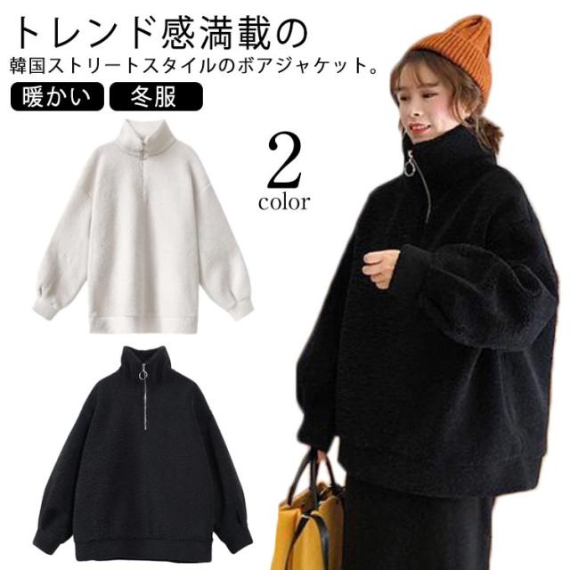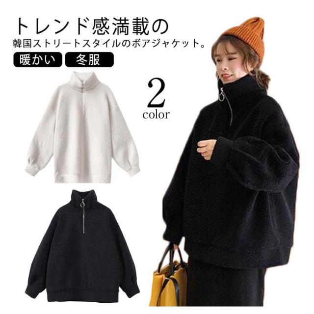 ボアジャケット ブルゾン レディース コート アウター モコモコ ボア フリース ジャケット 総ボア ジップアップ 秋冬 立ち襟 ふわふわ 暖かい 大きサイズ 冬服 冬物 アウトドア もこもこ シンプル 大人 かわいい