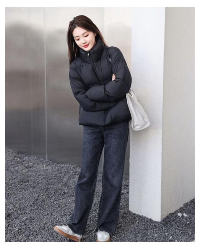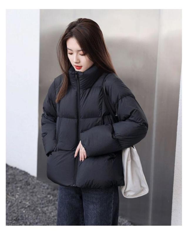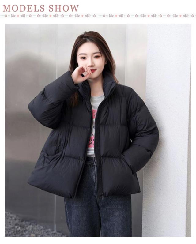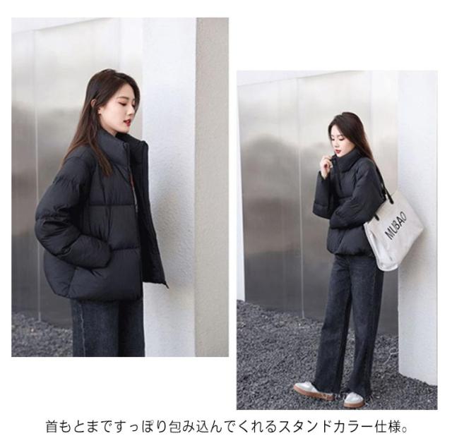 中綿ジャケット 中綿ブルゾン フェイクダウンジャケット レディース アウター ダウンコート ショート丈 防寒対策 カジュアル スタンドカラー ブラック 黒 冬服 低身長
