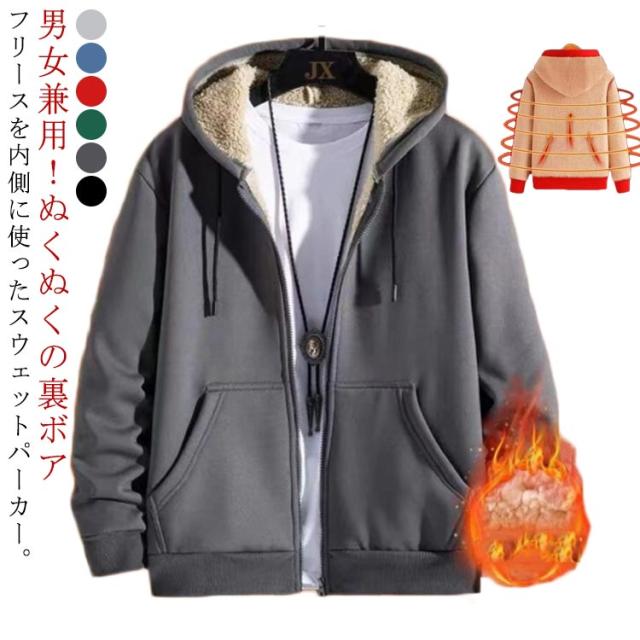 送料無料 裏起毛 パーカー あったか 裏ボア ジップパーカー メンズ レディース 裏起毛 フルジップパーカー スウェットパーカー 極暖 ふわふわ 暖かい もこもこ 防寒 アウター スエット フード 無地 シンプル ゆったり おしゃれ 秋冬 ルームウェア スポーツウェア 男女兼用