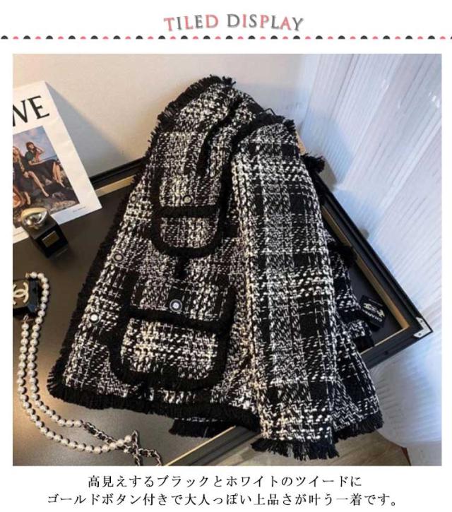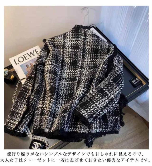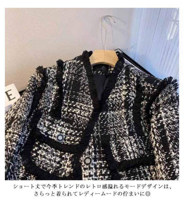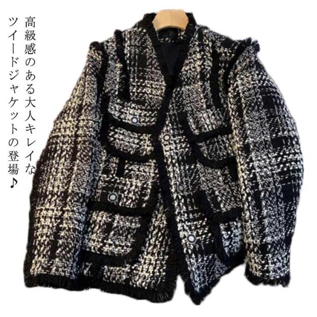 送料無料 レディース スタジャン ジャケット ブルゾン アウター カジュアル 長袖 秋 冬 大人 可愛い ツイードジャケット トップス 高級感 フェミニン きれいめ エレガント おしゃれ お出かけ デイリー ブラック 大きいサイズ