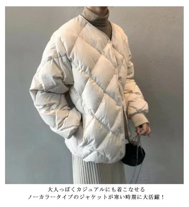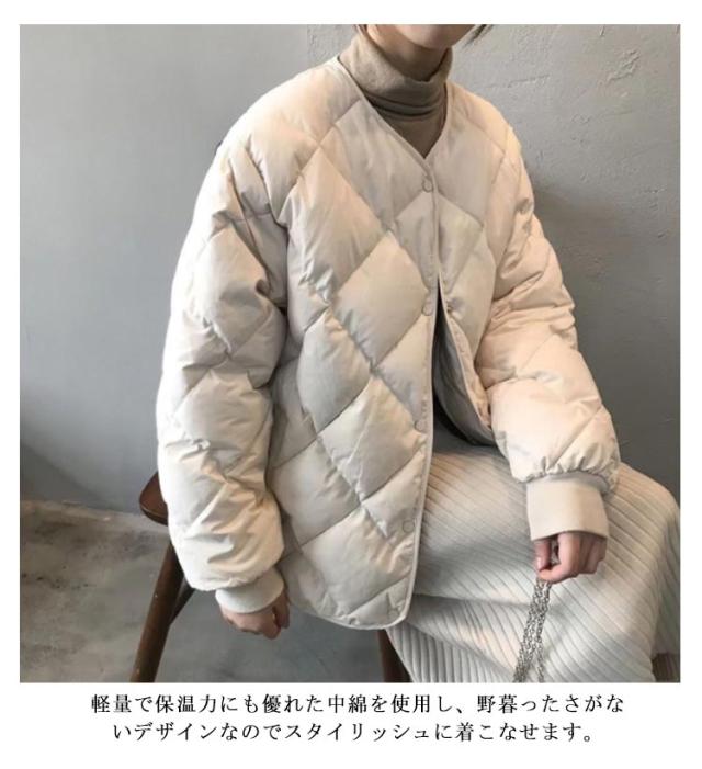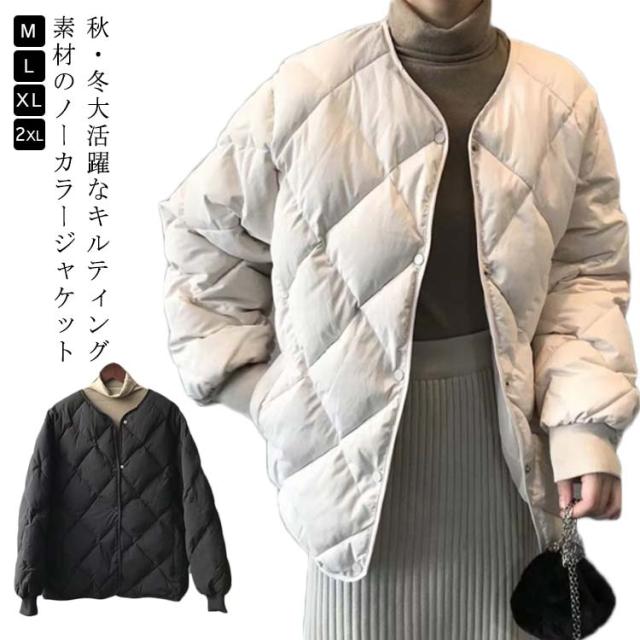 送料無料 キルティングコート 中綿 レディース コート 中綿コート ショート丈 冬 ショートコート 無地 軽量 ジャケット 防寒 大きいサイズ ゆったり アウター ポケット付き ノーカラー 秋冬 防風 お洒落 シンプル 暖かい M L XL 2XL