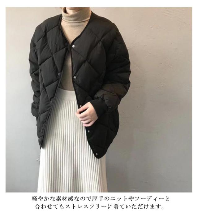 | 秋・冬大活躍なキルティング素材のノーカラージャケット★大人っぽくカジュアルにも着こなせる ノーカラータイプのジャケットが寒い時期に大活躍! 軽量で保温力にも優れた中綿を使用し、野暮ったさがないデザインなのでスタイリッシュに着こなせます。 首回りをスッキリと見せてくれるノーカラーデザインに加え、袖口にリブを施してメリハリを効かせたこだわりのディテールにも注目◎ ヒップラインも隠れる着丈で、細身パンツとも安心して合わせられる女性らしい着丈◎ 軽やかな素材感なので厚手のニットやフーディーと合わせてもストレスフリーに着ていただけます。あると便利なポケットはデザインを重視し、大きめのパッチポケットで機能性も◎ シンプルなデザインが、どんなコーデとも相性抜群!襟を抜いて着るとぐっとこなれ感が出て、さまざまなコーデを楽しめます。 | |