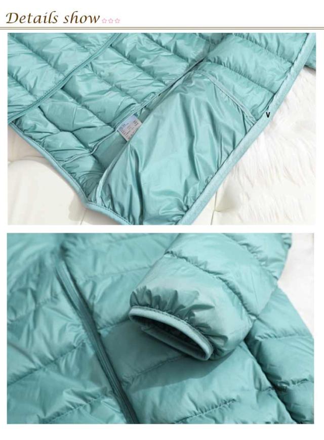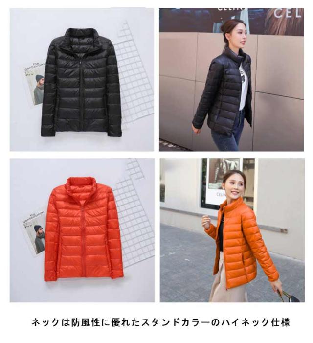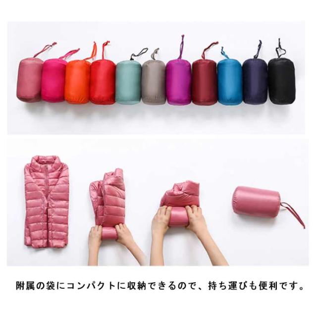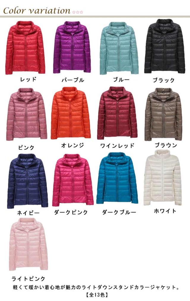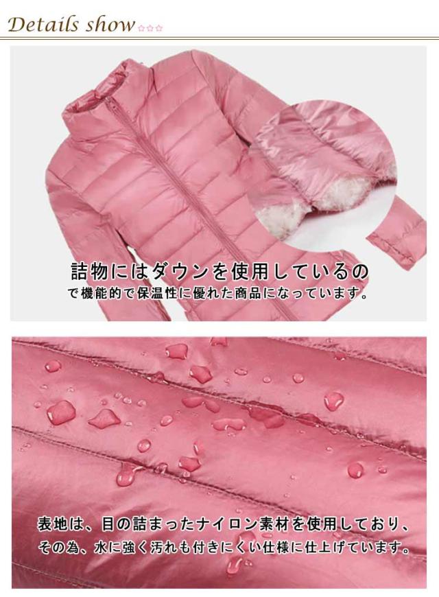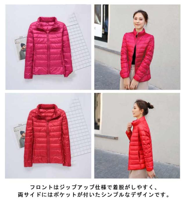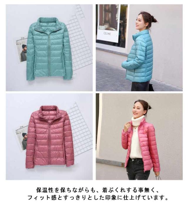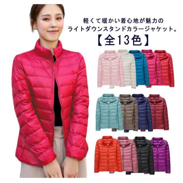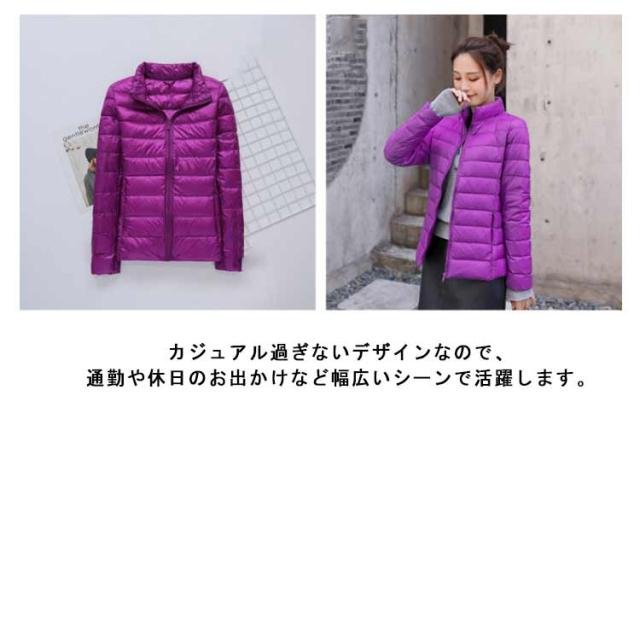 ダウンジャケット スタンドカラー レディース ライトダウン ジャケット インナーダウン ショート丈 スリム 細身 軽量 薄手 防寒 保温 あたっか インナーダウンジャケット 長袖 ポケッタブル 収納袋付き 春 秋 冬 アウター 上着 大きいサイズ 紫 【送無】