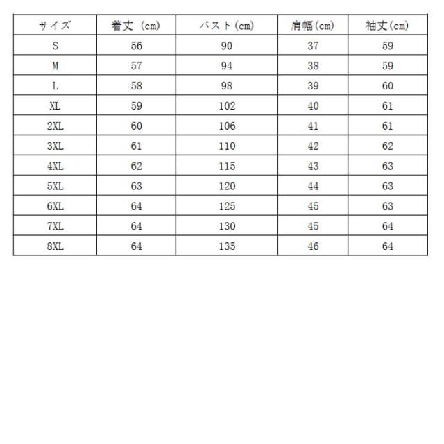 | サイズについての説明 | S M L XL 2XL 3XL 4XL 5XL 6XL 7XL 8XL |