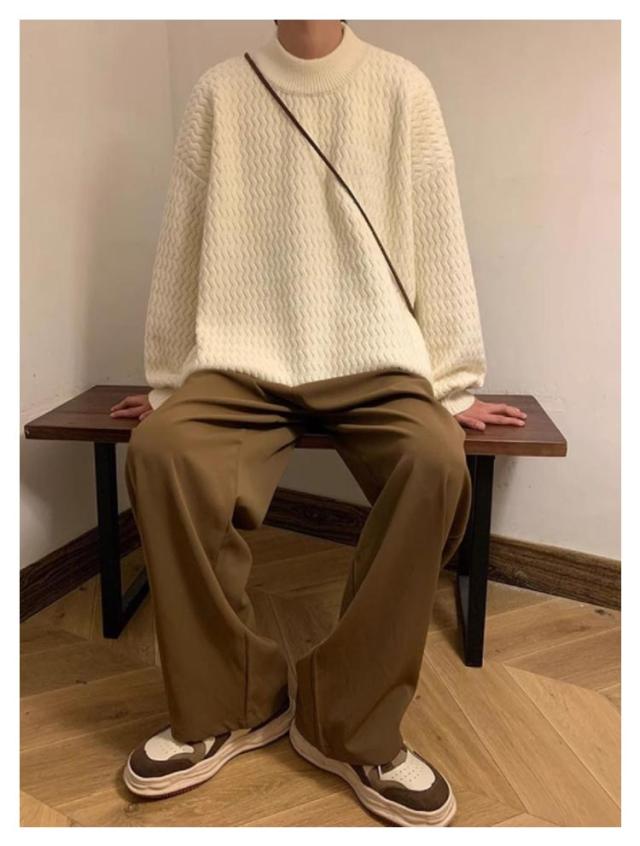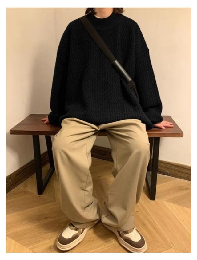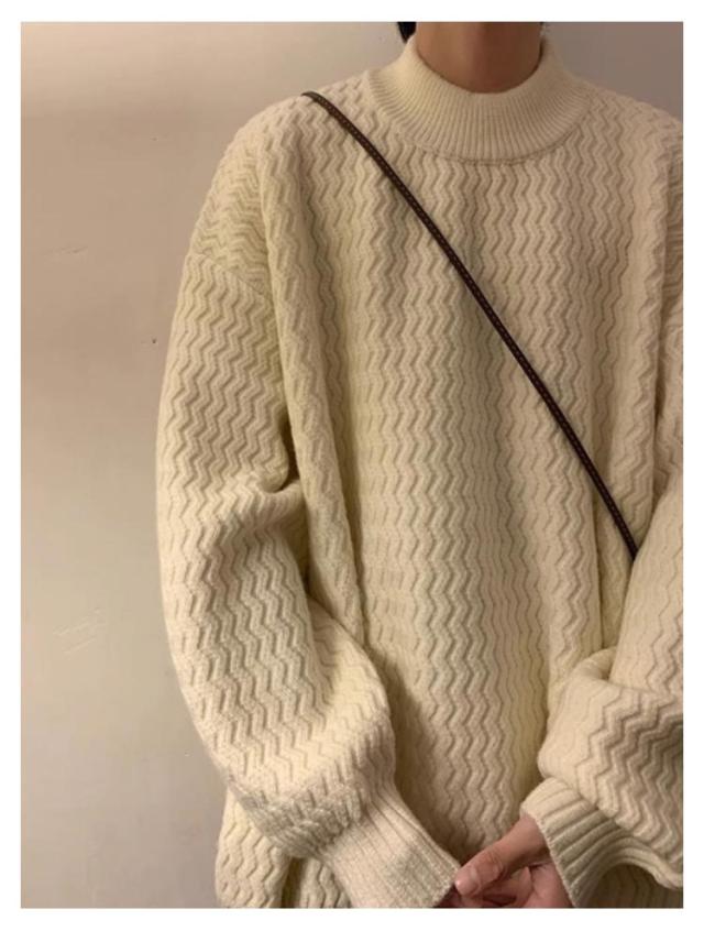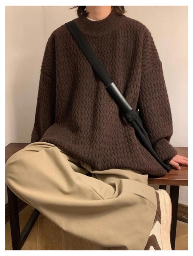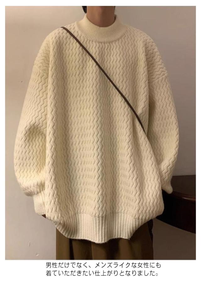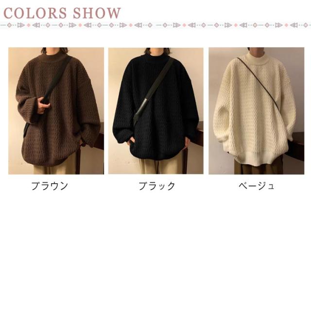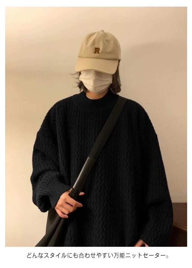 セーター ニット メンズ モックネック ヴィンテージ ゆったり オーバーサイズ ビッグシルエット ドルマン 無地 シンプル ストリート おしゃれ 秋 冬 プルオーバー ブラウン ブラック ベージュ