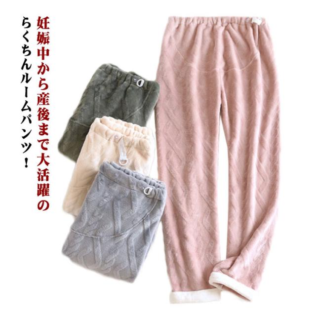 マタニティパンツ ふわふわ もこもこ ルームパンツ 秋冬 あったかい レディース ルームウェア 部屋着 ウエスト調整 産前 産後 妊婦服 リラックス感 防寒対策 シンプル 冷え防止 送料無料