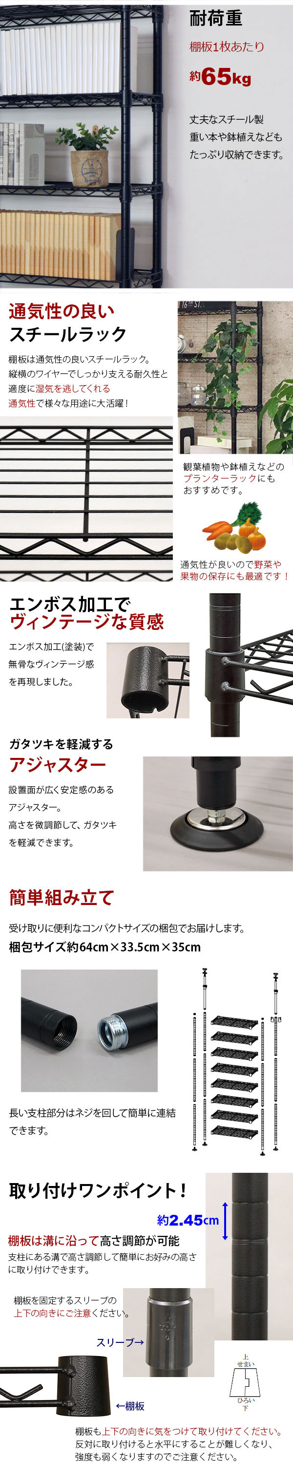 耐荷重(約):棚板1枚あたり65kg