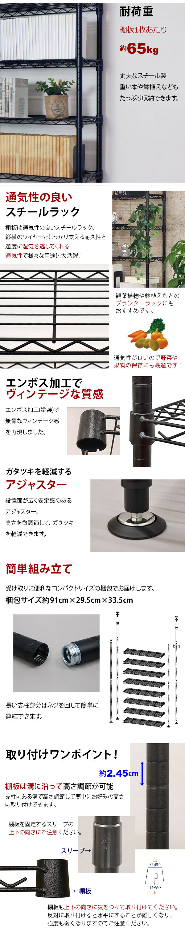 耐荷重(約):棚板1枚あたり65kg