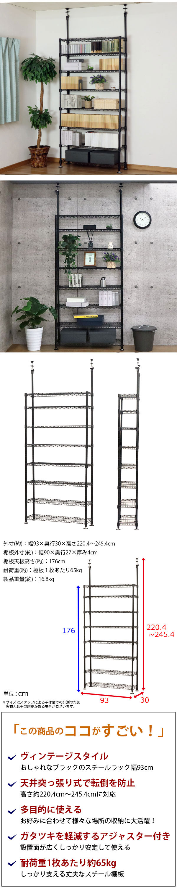 外寸(約):幅93×奥行30×高さ220.4〜245.4cm
