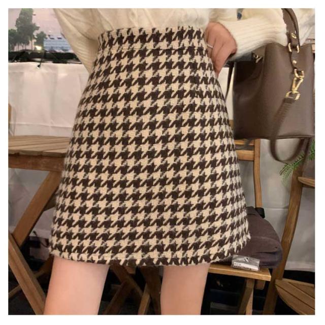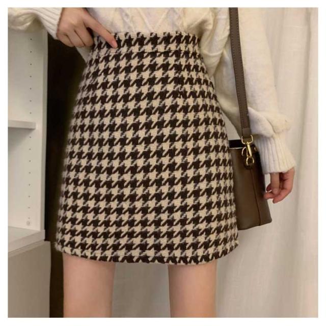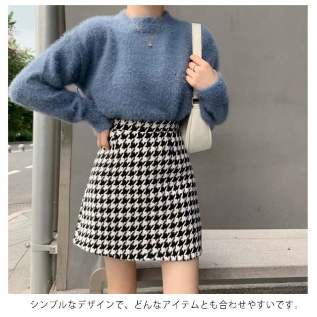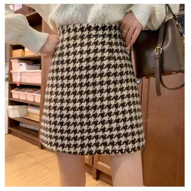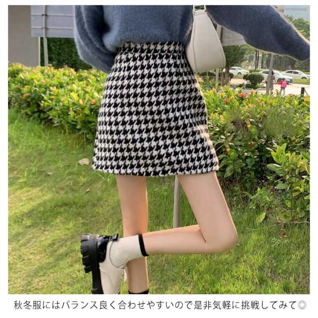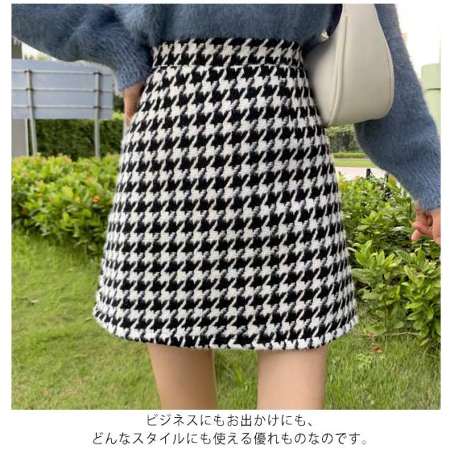 送料無料 スカート レディース 千鳥柄 タイトスカート ボトムス ニスカート 台形 秋冬 ハイウエスト 厚手 ショートスカート シンプル きれいめ 美脚見せ 可愛い 履きやすい おしゃれ