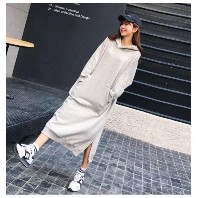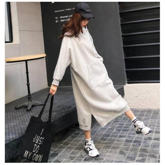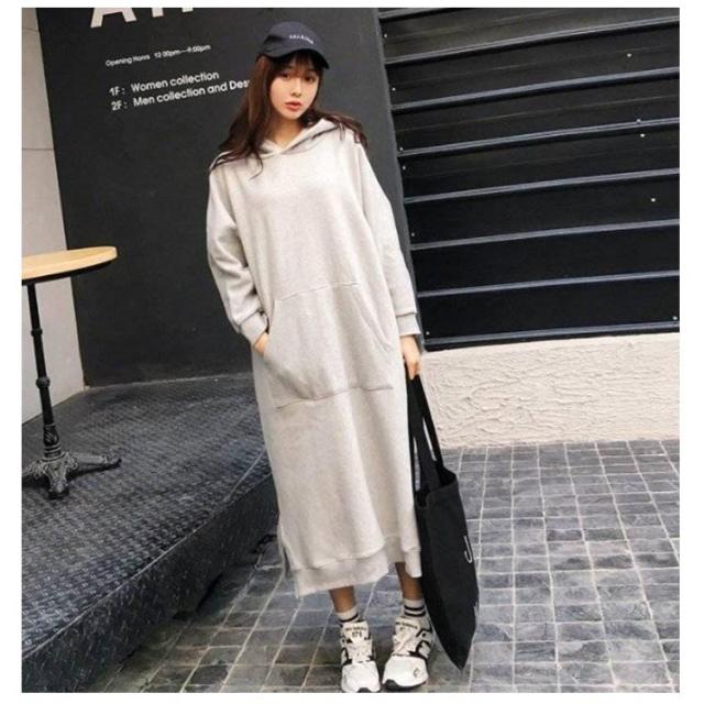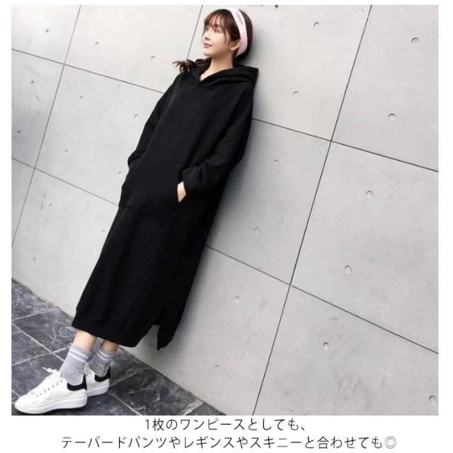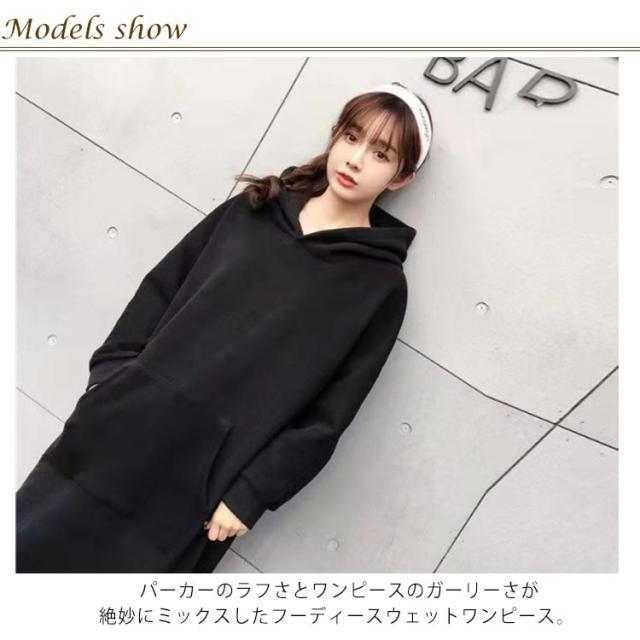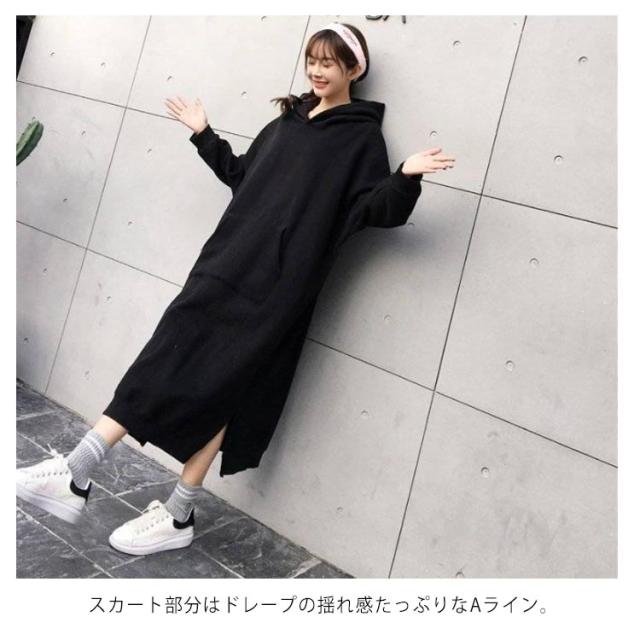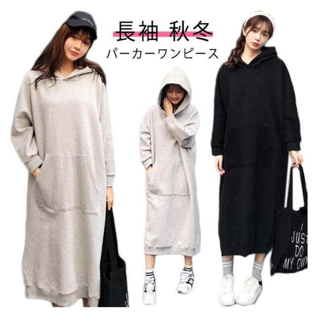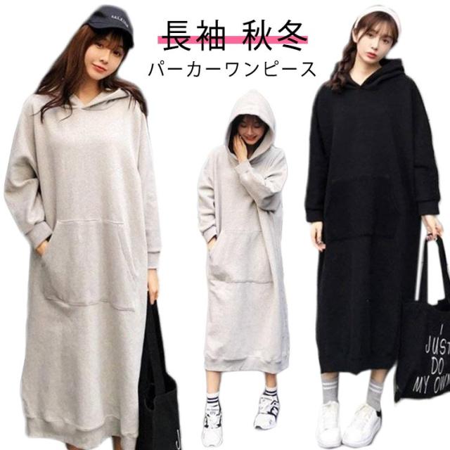 送料無料 ワンピース 長袖 秋冬 パーカーワンピース パーカー ロング丈 フーディーワンピース スウェットワンピ カジュアルワンピース フレア ウエストシェイプ ハイウエスト ロング丈 楽ちん Aライン ポケット付き 落ち感 リラックス 部屋着 ルームウェア