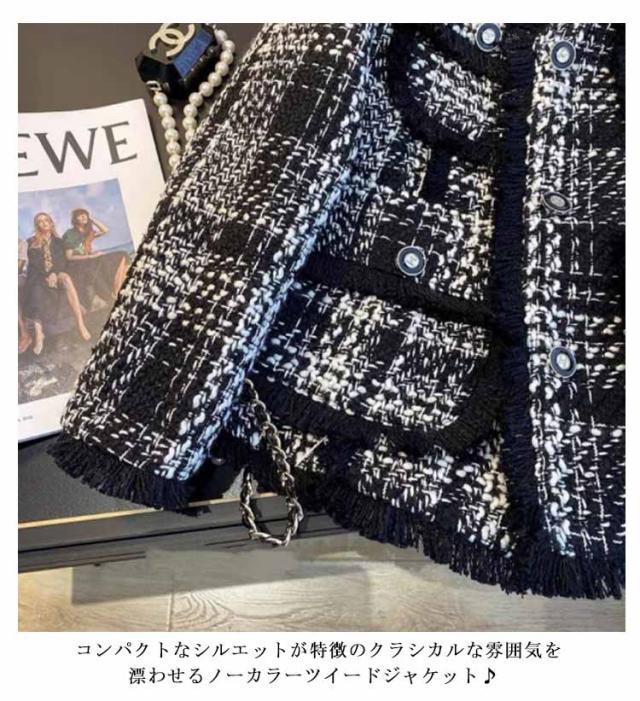 | 高級感のある大人キレイなツイードジャケットの登場♪ 高見えするブラックとホワイトのツイードにゴールドボタン付きで大人っぽい上品さが叶う一着です。 この一枚を羽織るだけでいつものコーデがこなれ感のある大人の女性に格上げ◎ 流行り廃りがないシンプルなデザインでもおしゃれに見えるので、大人女子はクローゼットに一着は忍ばせておきたい優秀なアイテムです。 コンパクトなシルエットが特徴のクラシカルな雰囲気を漂わせるノーカラーツイードジャケット♪ ボディラインを拾いすぎない余裕のあるシルエットが羽織りやすく、スカートにもパンツにも合わせやすい丈感です。 ショート丈で今季トレンドのレトロ感溢れるモードデザインは、さらっと着られてレディームードの佇まいに◎ コンパクトなシルエットが特徴のクラシカルな雰囲気を漂わせるノーカラーツイードジャケット♪ ボディラインを拾いすぎない余裕のあるシルエットが羽織りやすく、スカートにもパンツにも合わせやすい丈感です。 ショート丈で今季トレンドのレトロ感溢れるモードデザインは、さらっと着られてレディームードの佇まいに◎ | |