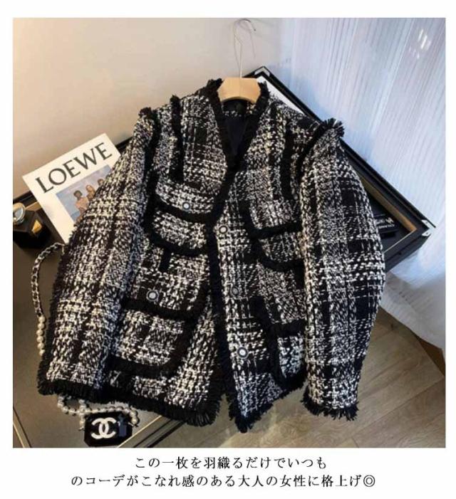 送料無料 レディース スタジャン ジャケット ブルゾン アウター カジュアル 長袖 秋 冬 大人 可愛い ツイードジャケット トップス 高級感 フェミニン きれいめ エレガント おしゃれ お出かけ デイリー ブラック 大きいサイズ