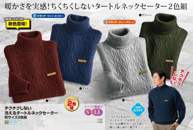 ニット セーター タートルネック メンズ シニア チクチクしない洗えるタートルネックセーター 2色組 紳士服 男性 ハイネック ワインレッド ネイビー グレー グリーン ファッション 50代 60代 70代 80代 父の日 お父さん 秋物 冬物 秋冬 fri p20541 p24847 p26422