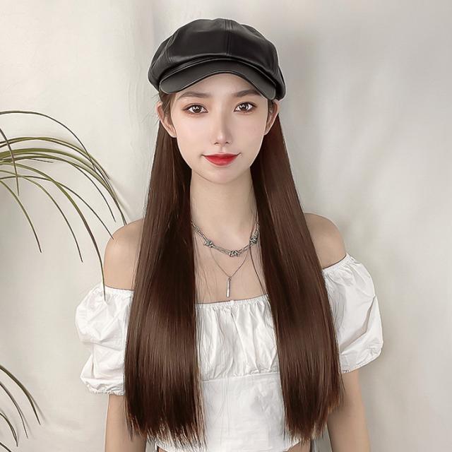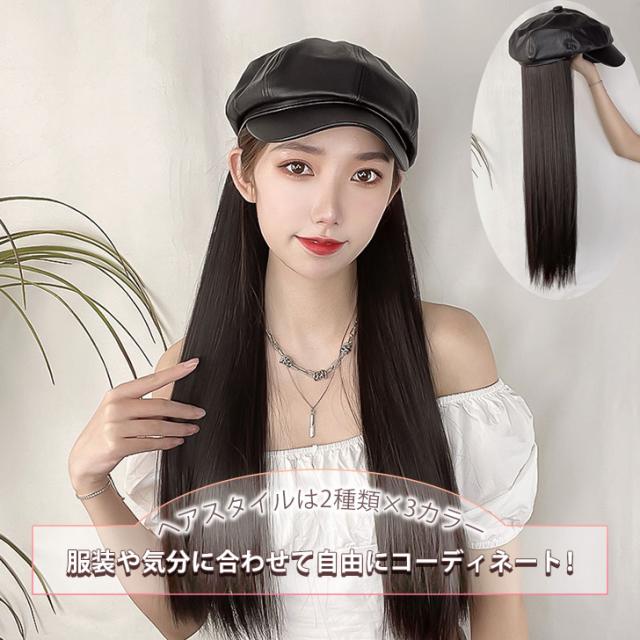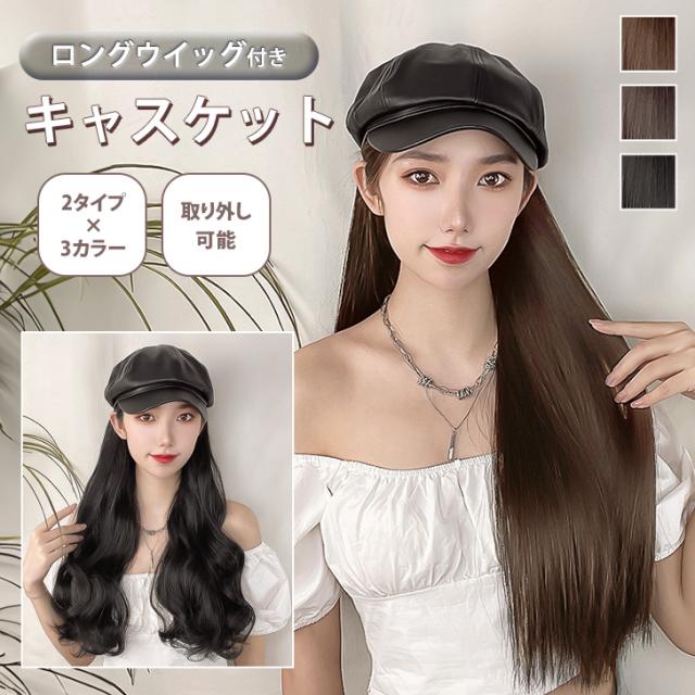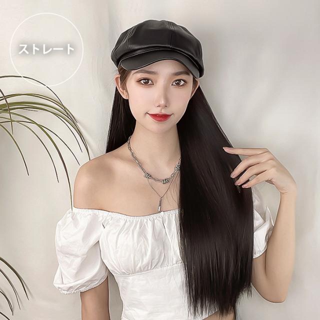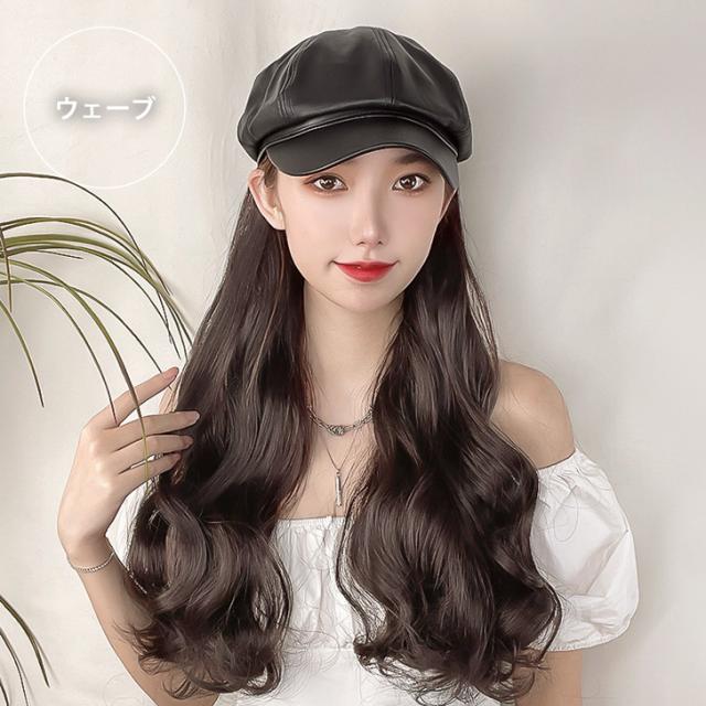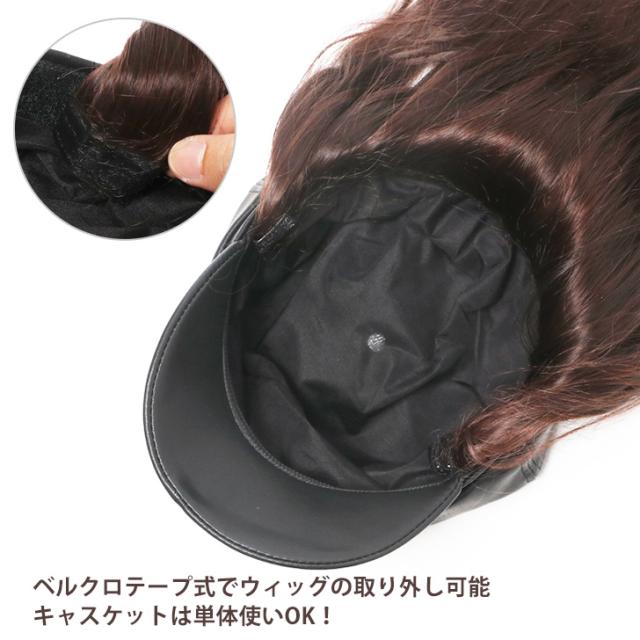 新作 フェイクレザー キャスケット付き ベルクロテープ式 ロング ウィッグ レディース 帽子付きウィッグ 髪付き帽子 帽子 小顔効果 自然 ロングウィッグ フルウィッグ かつら エクステ 耐熱 カール ストレート