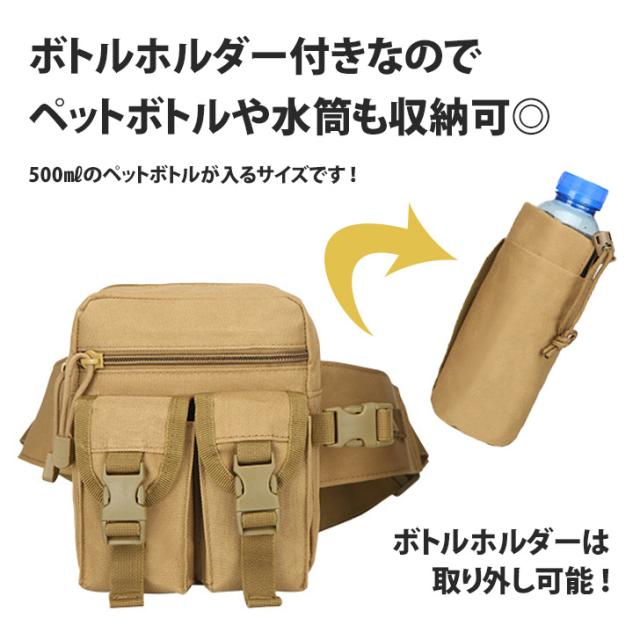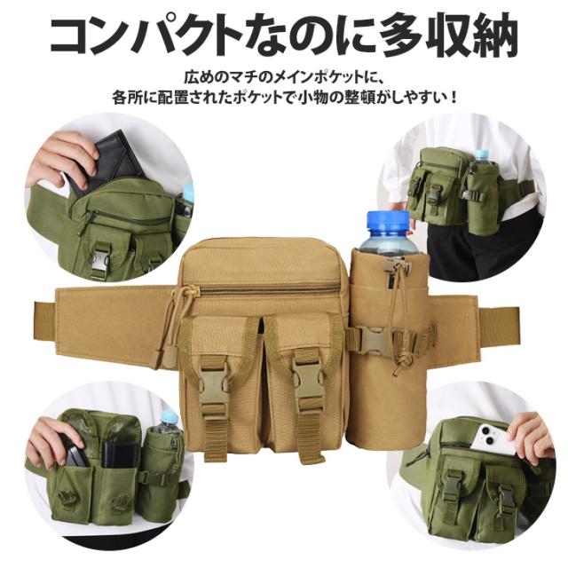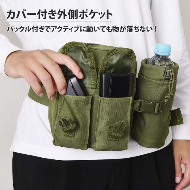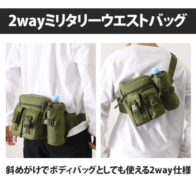 新作 2way 多収納 ミリタリー ウエストバッグ メンズ レディース ウエストポーチ ランニングポーチ ボディバッグ ショルダーバッグ 斜めがけ ペットボトル 大容量 軽量 作業 釣り 登山 バイク おしゃれ 迷彩