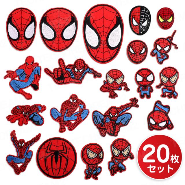 あす楽 刺繍 ワッペン 20枚入り スパイダーマン アイロン接着 ミニ おしゃれ かわいい キャラクター マーク 手芸 キャラクターワッペン
