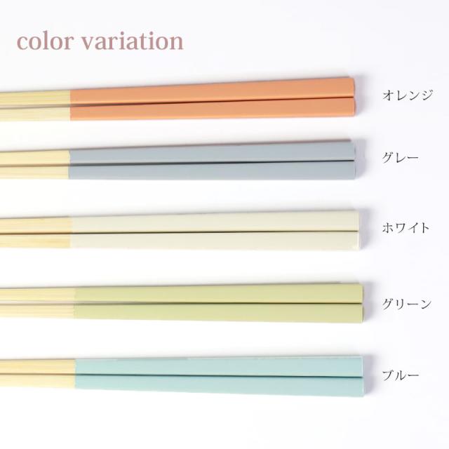 細身で持ちやすく、白竹のナチュラルな風合いに爽やかなくすみカラーを掛け合わせたシンプルながらもおしゃれな天然竹製のお箸です。