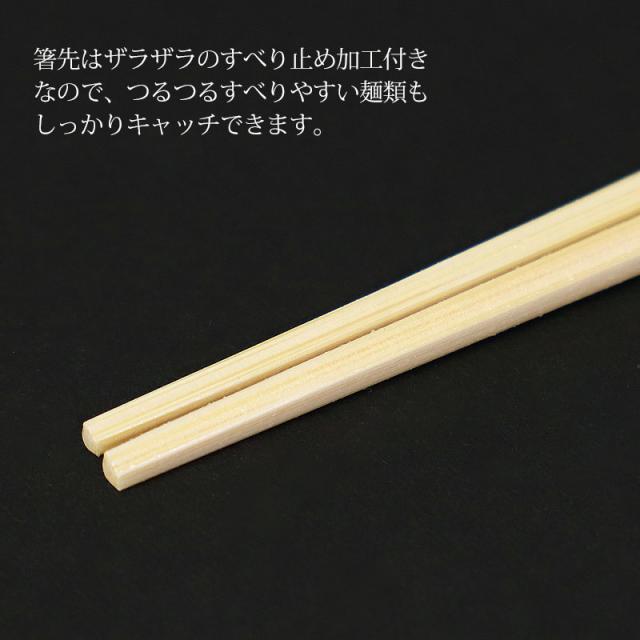 箸先は先角仕上げ、ザラザラのすべり止め加工付きなので、細かい物も掴みやすく、つるつるすべりやすい麺類もしっかりキャッチできます。