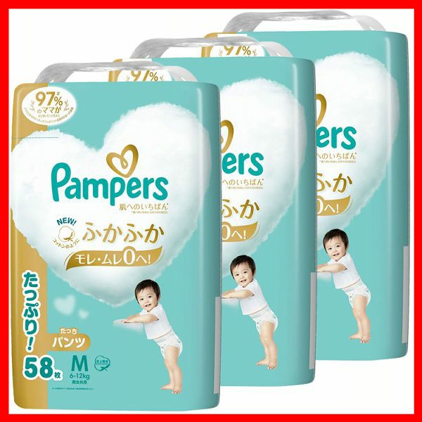 紙おむつ ベビー用品 パンツ式(3個セット)パンパース 肌へのいちばんパンツ / ウルトラジャンボ M たっち 58枚(6-12kg) P&G ふかふか心地 肌への一番 デザイン2種類 もれ・ムレ0 まとめ買い 超吸収 Pampers 送料無料