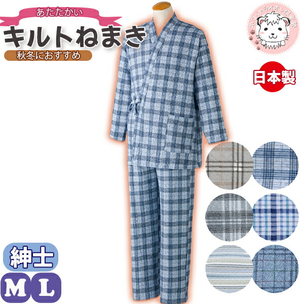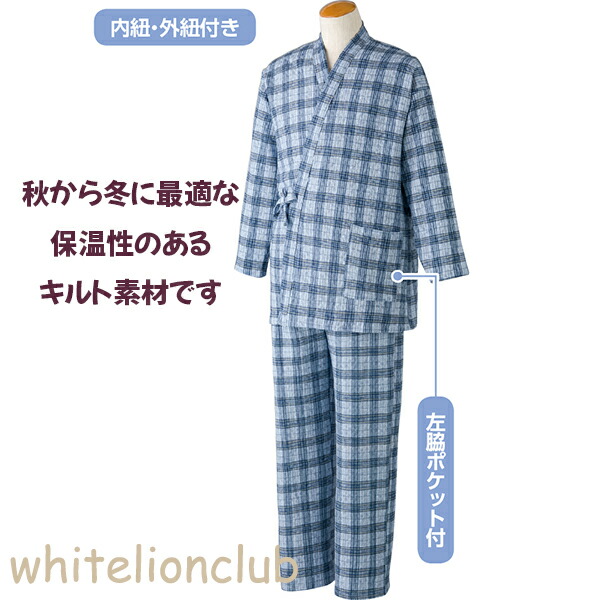介護パジャマ キルト 打合せパジャマ キルトニット 打ち合わせ 甚平タイプ M/L | メンズ パジャマ お寝巻き 介護 入院 療養 手術 寝巻 介護用 ねまき 日本製