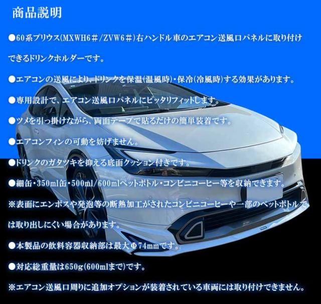 ●60系プリウス(MXWH6#/ZVW6#)右ハンドル車のエアコン送風口パネルに取り付けできるドリンクホルダーです。
