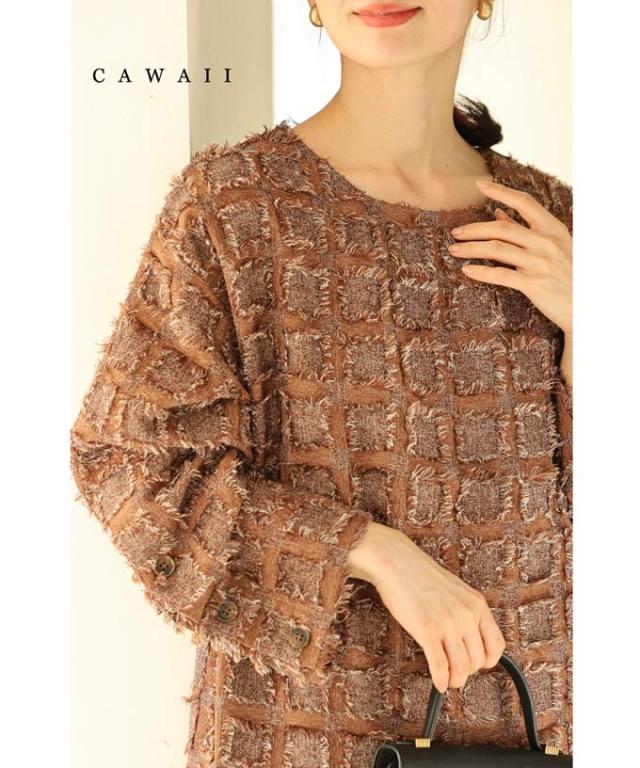 fkm00002od 新作 新着 再入荷 CAWAII FRENCHPAVE フレンチパヴェ エレガント ベーシック カジュアル 可愛い かわいい カワイイ おしゃれ オシャレ お洒落 個性 個性的 定番 ベーシック 大人かわいい 大人可愛い 上品 女性らしい デザイン スタンダード ナチュラル きれいめ キレイめ シンプル フェミニン レディース レディースファッション 大人 ママ ミセス 30代 40代 50代 60代 スクエア縁取る フリンジ プルオーバー トップス 長袖 長そで ロング袖 S M L フリーサイズ フリー 小さめ 小さめサイズ小さい 小さいサイズ 低身長 痩せ ほっそり 小柄 細身 標準サイズ 大きめシルエット 大きい 大きめ ビッグシルエット ぽっちゃり F サイズ自由 秋 冬 秋服 秋物 冬服 冬物 ブラウン 茶色 ワンカラー ワントーン 日常着 普段着 日常使い