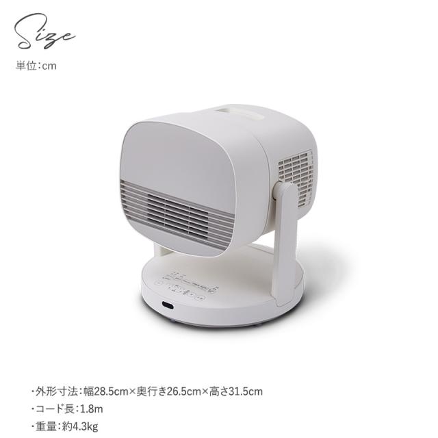 扇風機、サーキュレーター、ヒーター、衣類乾燥機としてコンパクトながら1台4役で一年中使える優れもの。簡単に持ち運べるので家中どこでも活躍します。オールシーズン使えるものだから収納場所にも困りません。