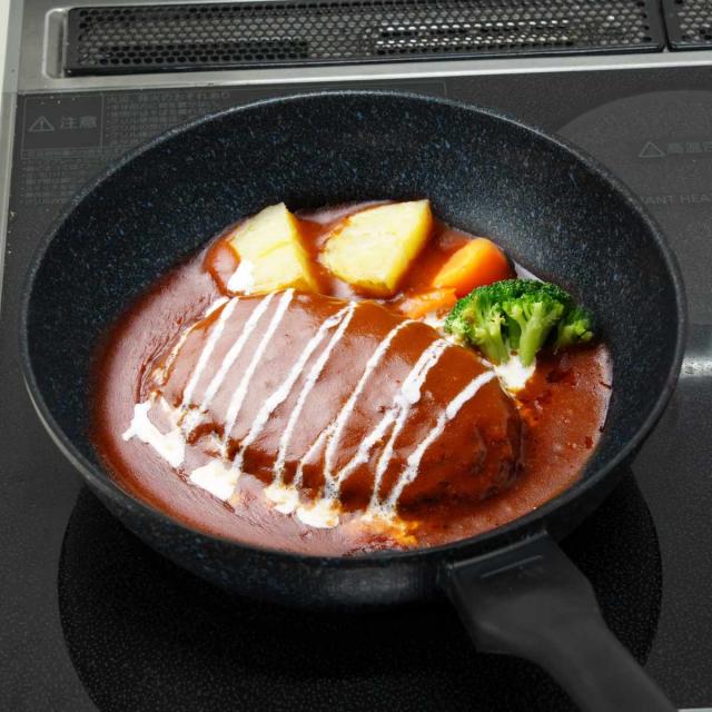 熱のムラが少なく、熱を伝えやすいダイヤモンド粒子とアルミダイキャストが本体の材質に使われています。熱伝導のいい材質は、食材にまんべんなく熱を伝え、中までしっかり火を通すので、ハンバーグの生焼けも防げます。また、細かな火力調節に敏感に反応するため、微妙な火加減での調理ができます。