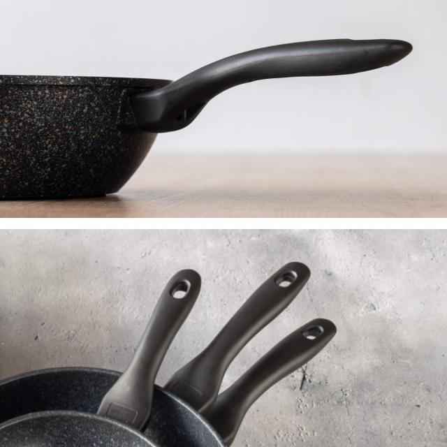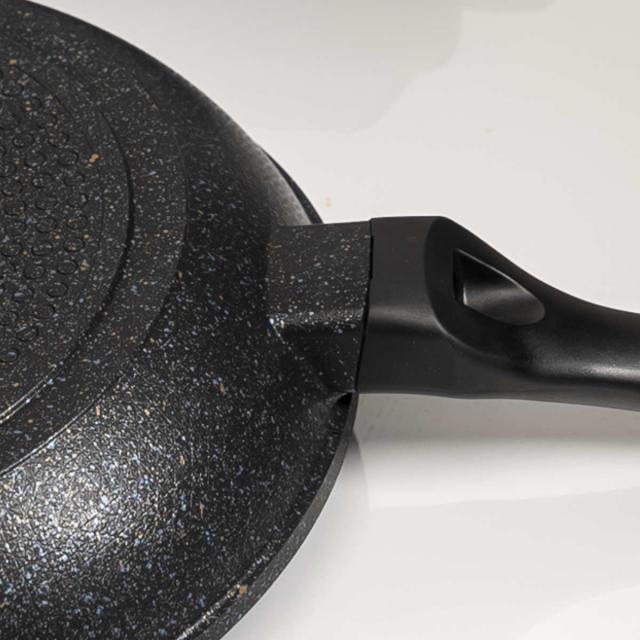 汚れや傷をガードするため、表面はマーブル(大理石)の粒子のコーティング、その下にもコーティングが何層も施されており、耐久性に優れています。また焦げ付きにくく、お手入れも簡単です。さらにマーブルコートに硬いダイヤモンドの粉末を配合しているので、より優れた耐磨耗性を持ち、コーティングが長持ちしてくれます。