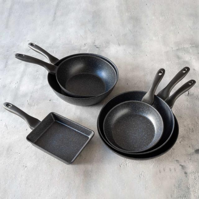 タフコのIHダイヤモンドコーティングシリーズはサイズ違い、深さがあるもの、玉子焼き器など、種類を幅広く取り揃えております。同じシリーズで揃えていただくことで、キッチンに統一感が生まれます。こちらのシリーズはオール熱源対応です。