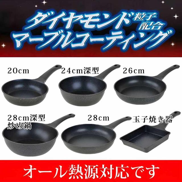 炒め鍋 28cm IH対応 軽量 タフクック 深型フライパン ダイヤモンドマーブルコーティング ( ガス火対応 オール熱源対応 いため鍋 深型 金属ヘラOK 軽い 28センチ アルミ製 フライパン ih対応 28cm フライパン 28cm)