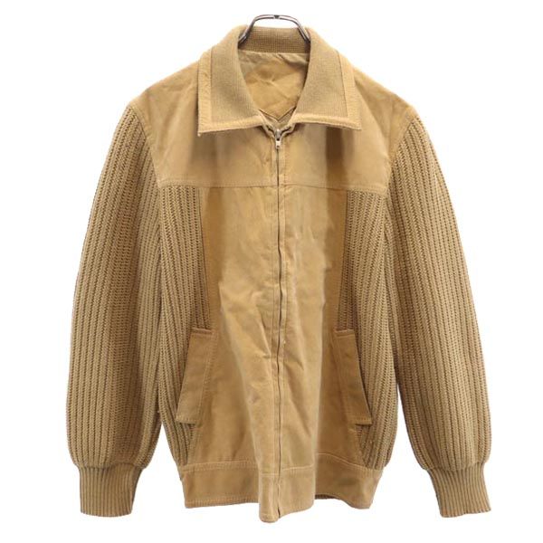長袖 スエード調 ニット切替 ジップジャケット L ブラウン系 メンズ