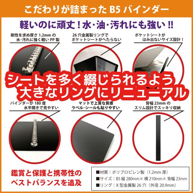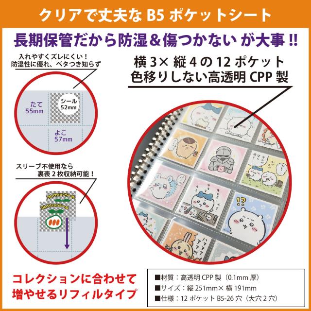 UVカット 52mmシール対応 B5 バインダー&ポケットシート (180枚収納) CL-BP113 ポケットシート15枚 ウエハースシール ファイル リフィル ビックリマン チョコ 52mm シール入れ 12ポケット ホルダー アルバム 送料無料