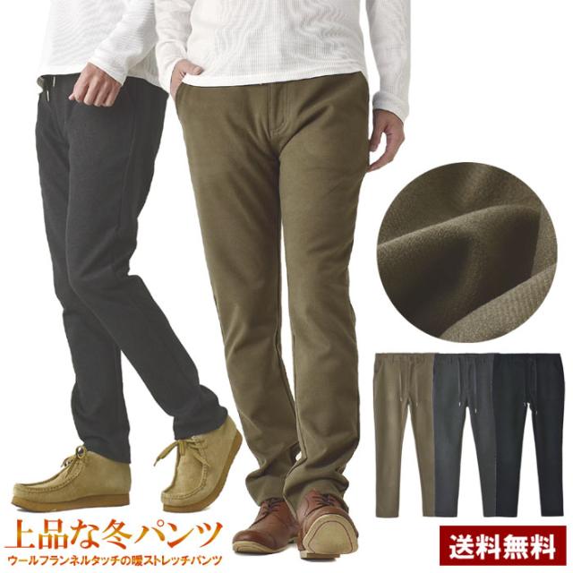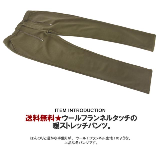 ポスト投函送料無料☆ウールフランネルタッチの暖ストレッチパンツ
