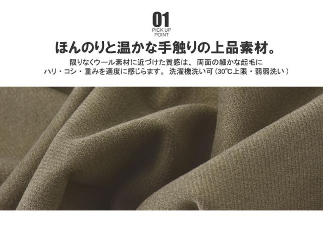 限りなくウール素材に近づけた質感は、両面の細かな起毛に