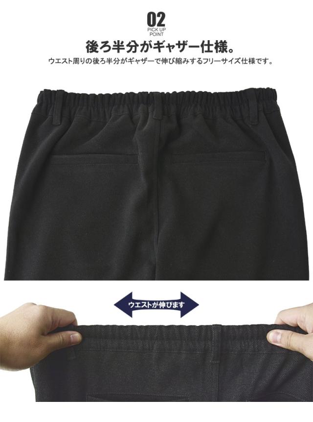 ・ウエスト内に腰ヒモを内蔵し、ウエスト周りの後ろ半分がギャザーで伸び縮みするフリーサイズ仕様