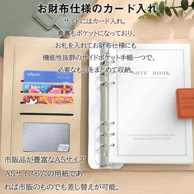 システム手帳 a5 6穴 ビジネス手帳 バインダー 革 メンズ レディース リフィル 中身 手帳カバー カード 軽量 日記 おしゃ
