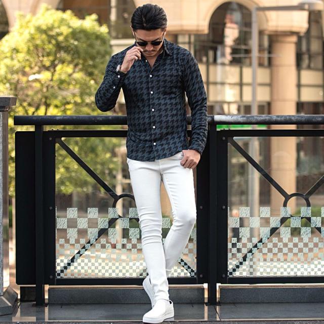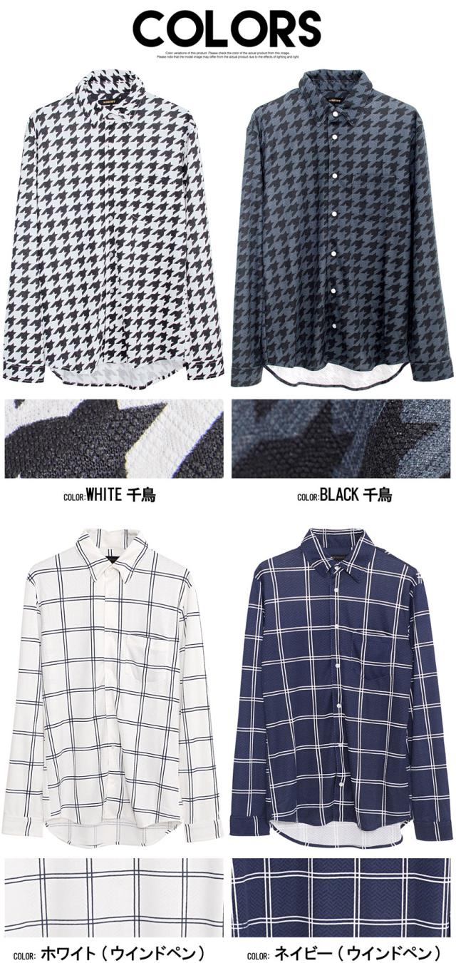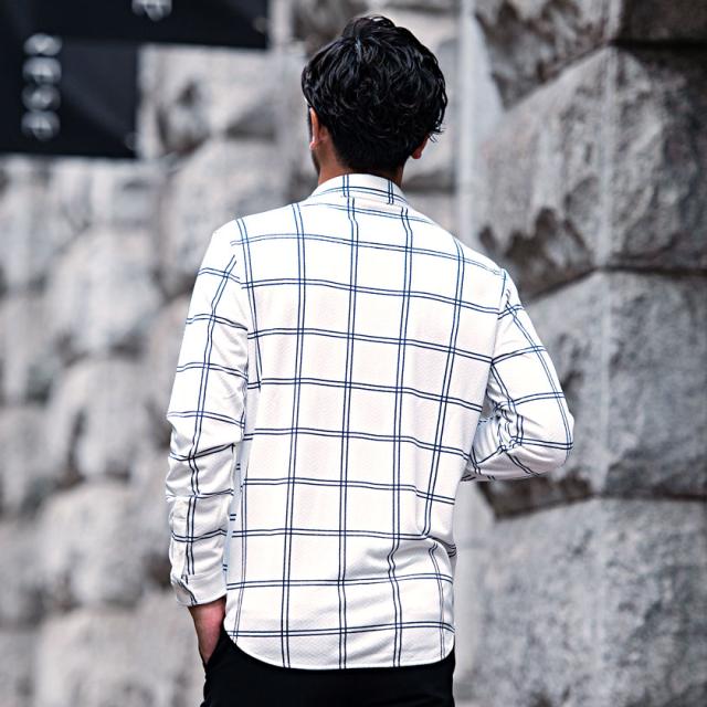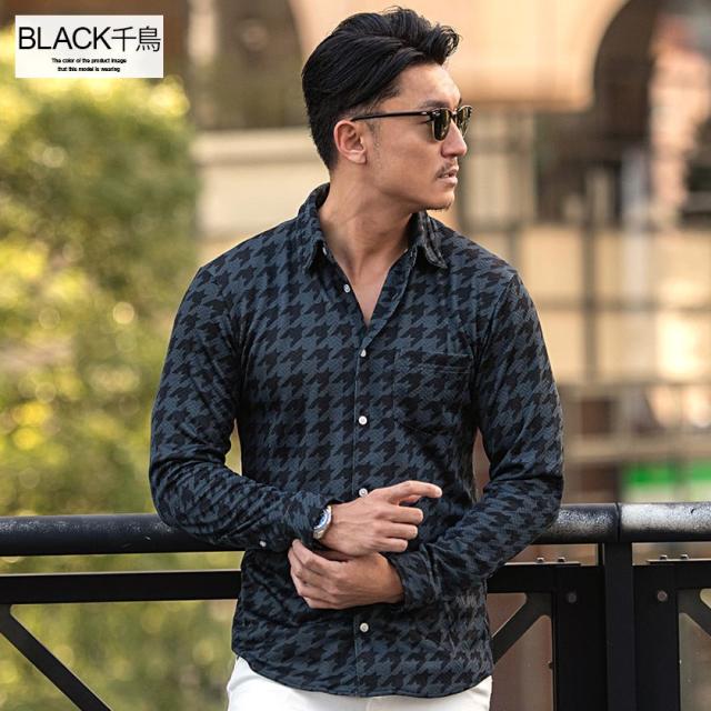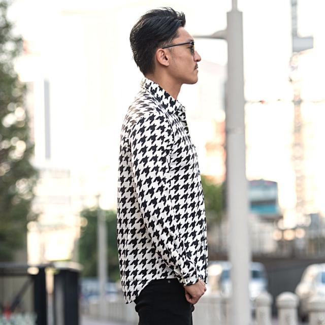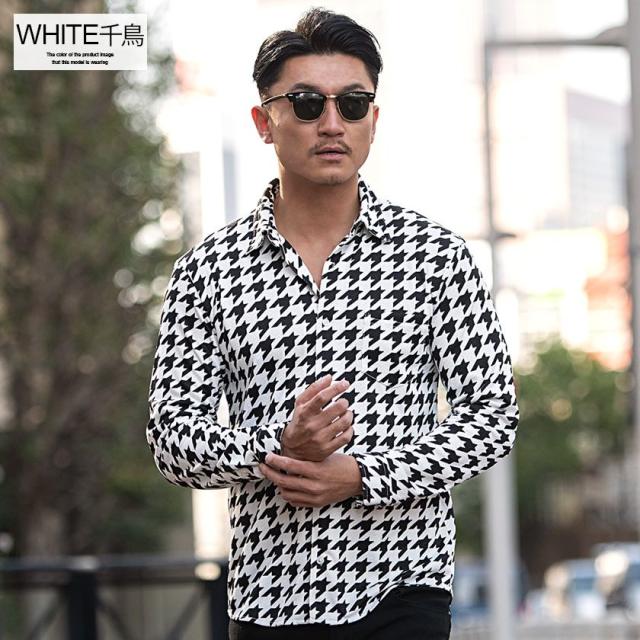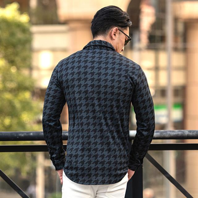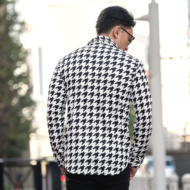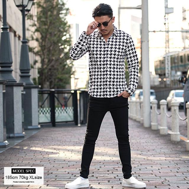 シャツ メンズ 長袖シャツ 柄シャツ 長袖 シャツ 千鳥格子 イタリアンカラー チェックシャツ 派手 スリム ストレッチ 伸縮性 ブラック ホワイト 黒 白 SOMEDIFF サムディフ ちょいワル ゴルフウェア 男性 男 服 秋 冬 春 ファッション 郵 [SDSB-3349]
