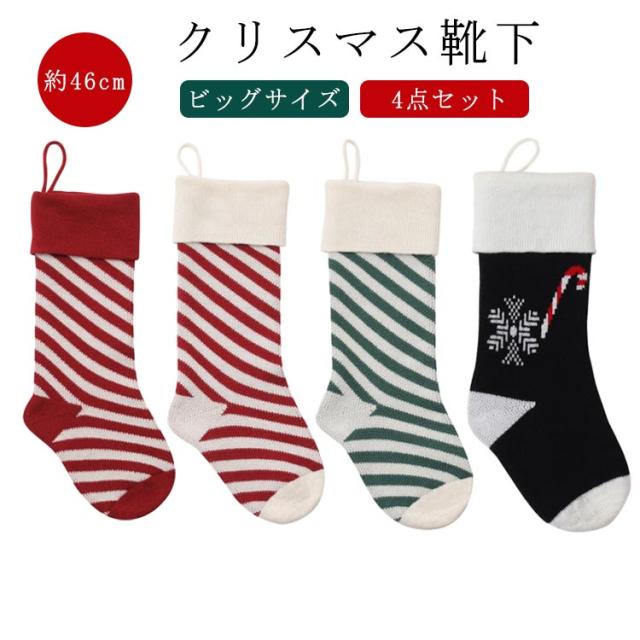 4点セット 46cm キャンディケイン 雪の結晶 靴下 クリスマスツリー クリスマス オーナメント ビッグ お菓子入れ ニット ソックス クリスマスソックス 暖炉 壁 飾り プレゼント入れ ソックス スナック キャンディー バッグ ギフト入れ ギフトポーチ 装飾 送料無料