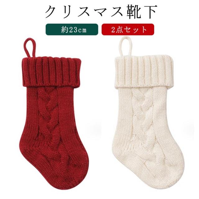 2点セット 23cm ニット ソックス クリスマスソックス クリスマス オーナメント クリスマス 靴下 お菓子入れ クリスマスツリー 暖炉 壁 飾り オーナメント プレゼント入れ ソックス スナック キャンディー 袋 バッグ ギフト入れ ギフトポーチ 壁飾り 店舗 送料無料
