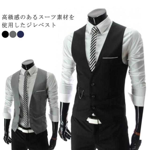 ベスト スーツベスト メンズ ジレ チョッキ フォーマルベスト カジュアル おしゃれ スリムベスト グレー ブラック テーラードベスト フォーマル お手入れ簡単 大きいサイズ ビジネス 紳士 大人 男性 無地 フォーマル 送料無料