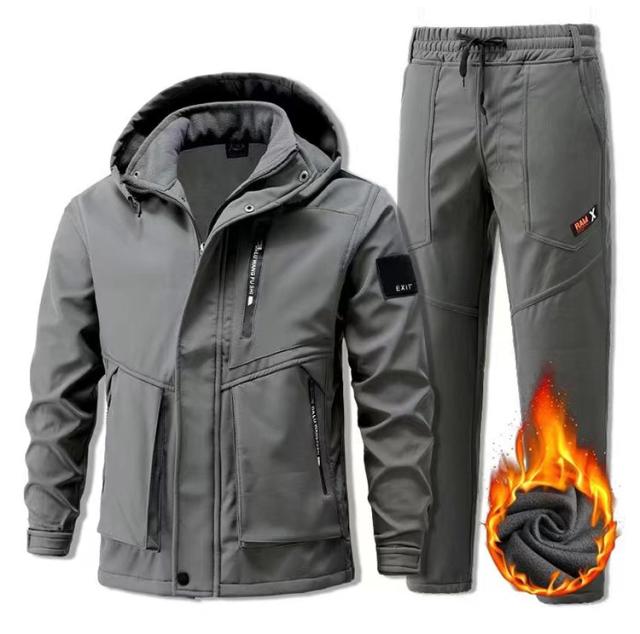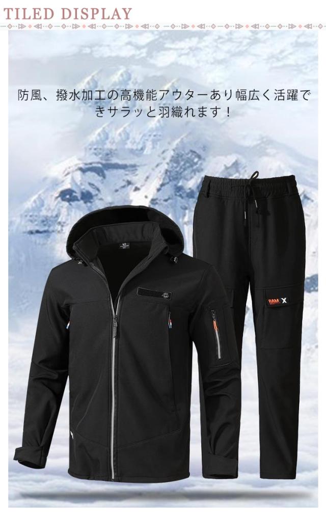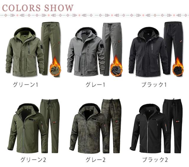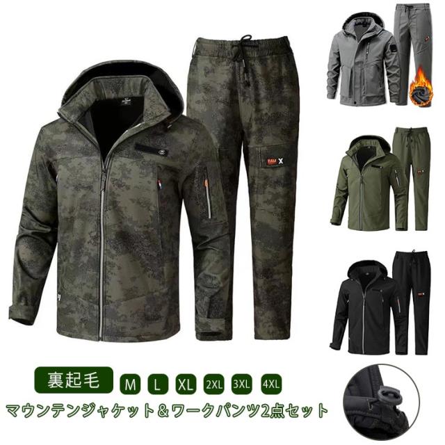2点セット マウンテンジャケット ワークパンツ メンズ レディース 上下セット 防風 厚手 撥水 アウター メンズ 裏起毛 マウンテンパーカー ユニセックス 裏ボア 暖かい 登山服 防寒着 作業パンツ アウトドア スポーツ