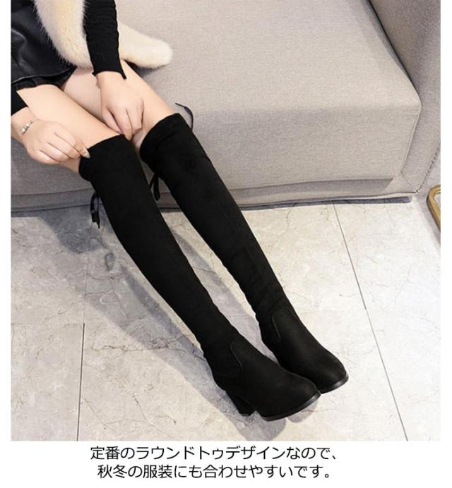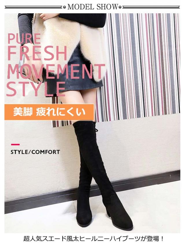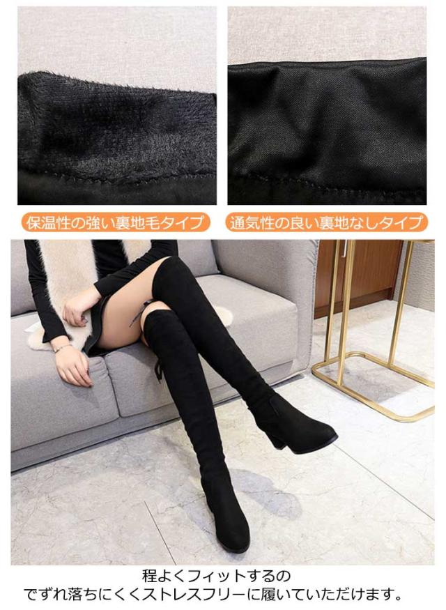 | 22.5-25.0cm あったか裏起毛/裏起なし×超美脚ニーハイブーツ! 超人気スエード風太ヒールニーハイブーツが登場! 程よくフィットするのでずれ落ちにくくストレスフリーに履いていただけます。 底は摩擦に強い滑り止め付きなので、滑りにくい仕様に。 伸縮性があるのでスキニーをブーツインしても良いですし、 ミニ丈のボトムに合わせて女性らしく履いてもOK。 定番のラウンドトゥデザインなので、秋冬の服装にも合わせやすいです。 2つのヒール高さ/裏起毛なしと裏起毛あり2タイプお選びいただけます。 | |