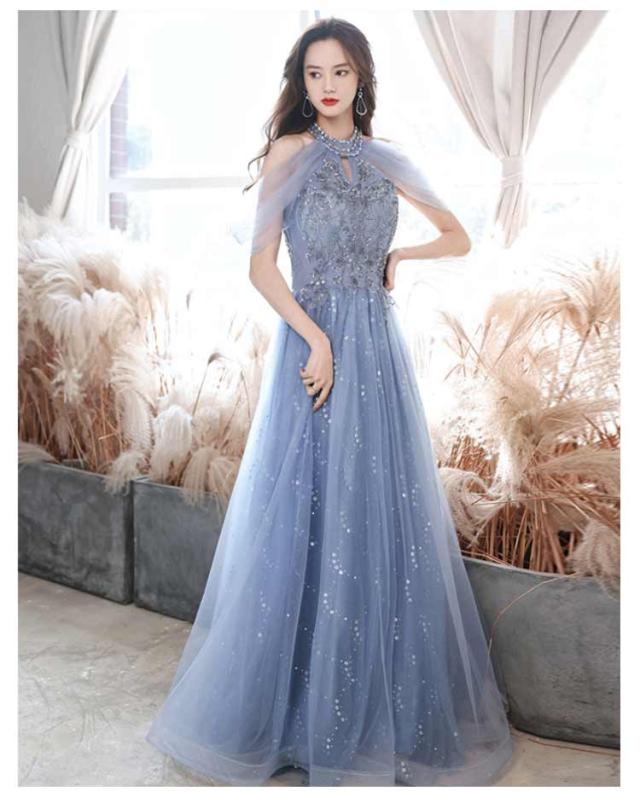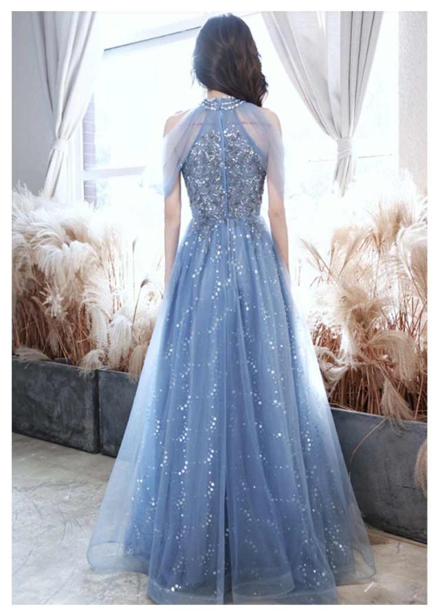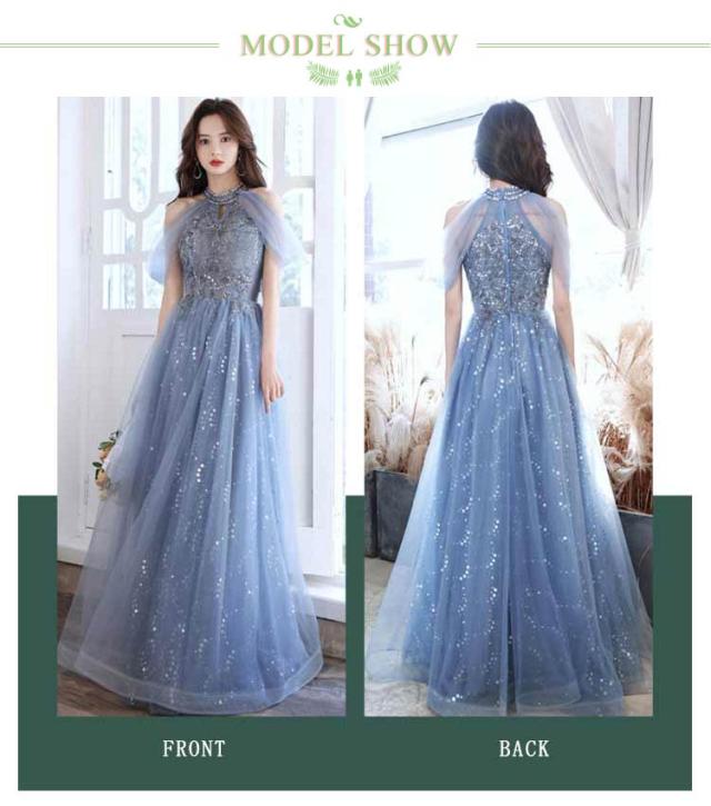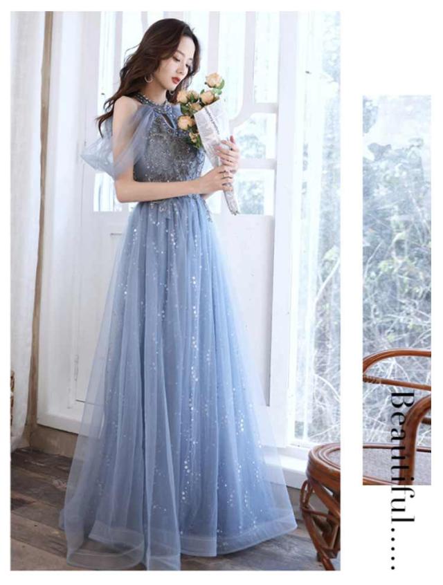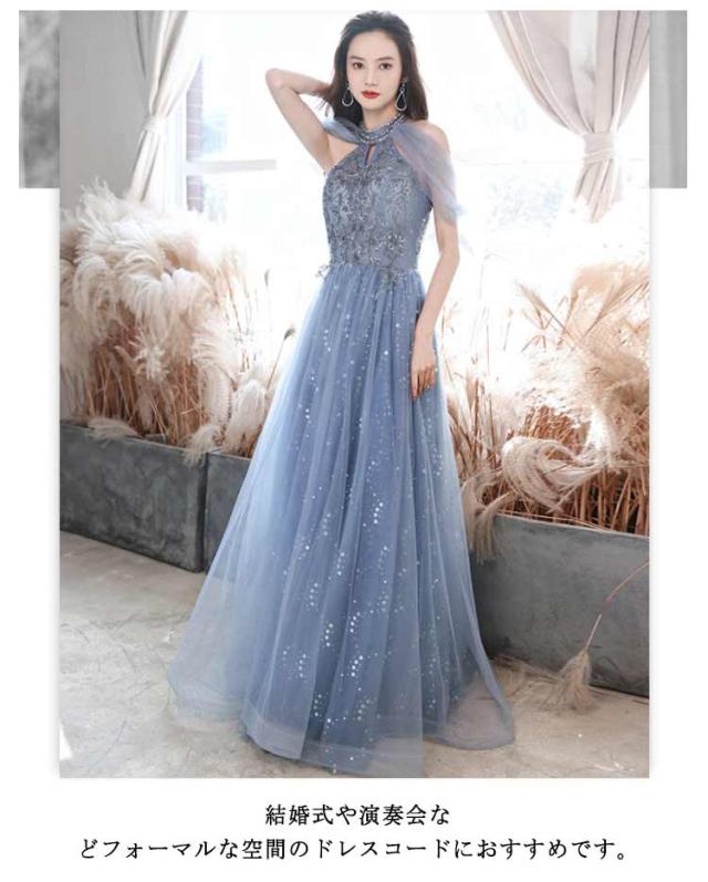 ロングドレス レディース 演奏会用 パーティードレス 結婚式 ドレス ステージドレス 大人 ピアノ 発表会 コーラス ロング 合唱衣装 マキシ丈大きいサイズ ファッション 成人式 ブルー