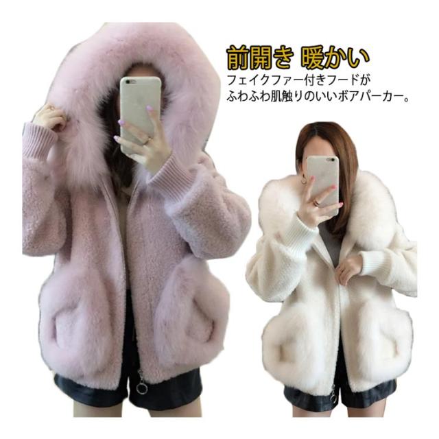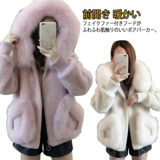 ふわふわ ボアコート ファーコート ショートコート ムートン風コート コート ボア アウター レディース ジャケット フェイクムートン 防寒 カジュアル 大人 フード付き 無地 厚手 長袖 前開き 秋冬 暖かい