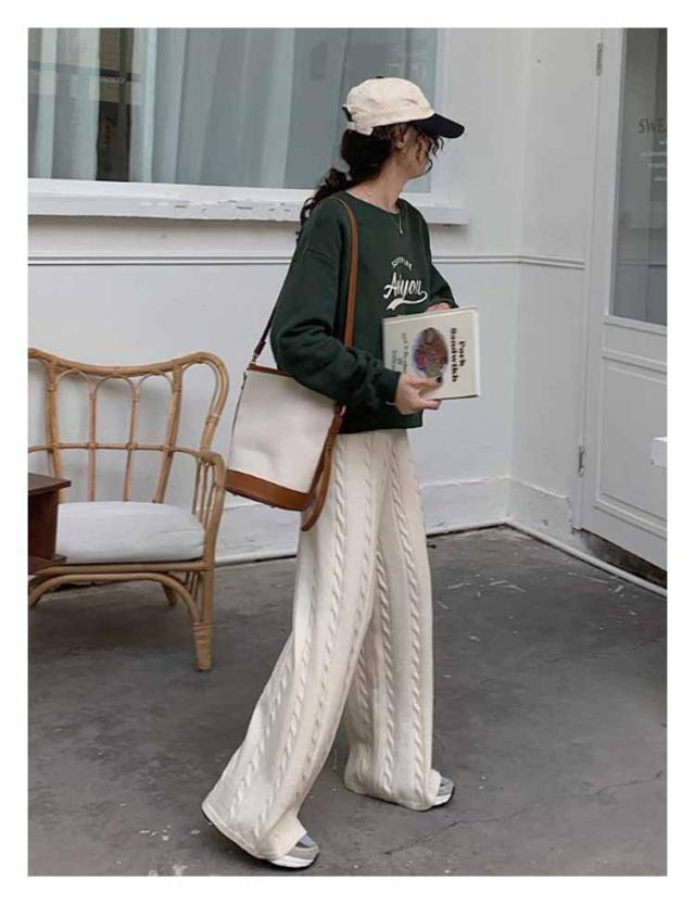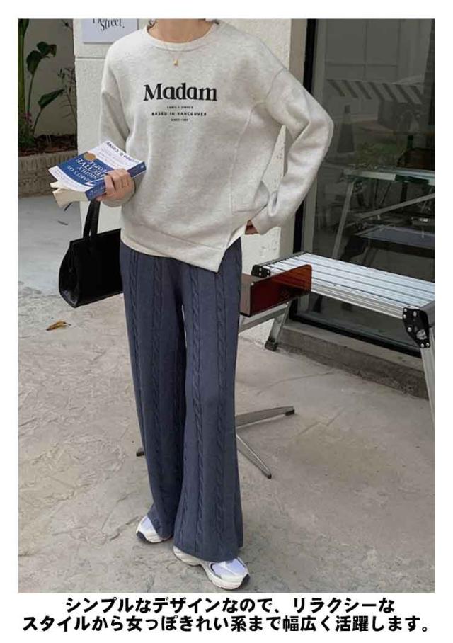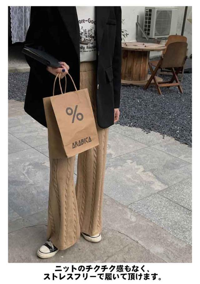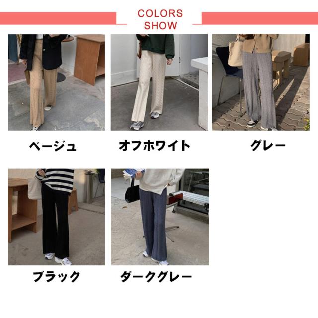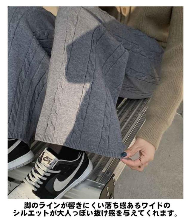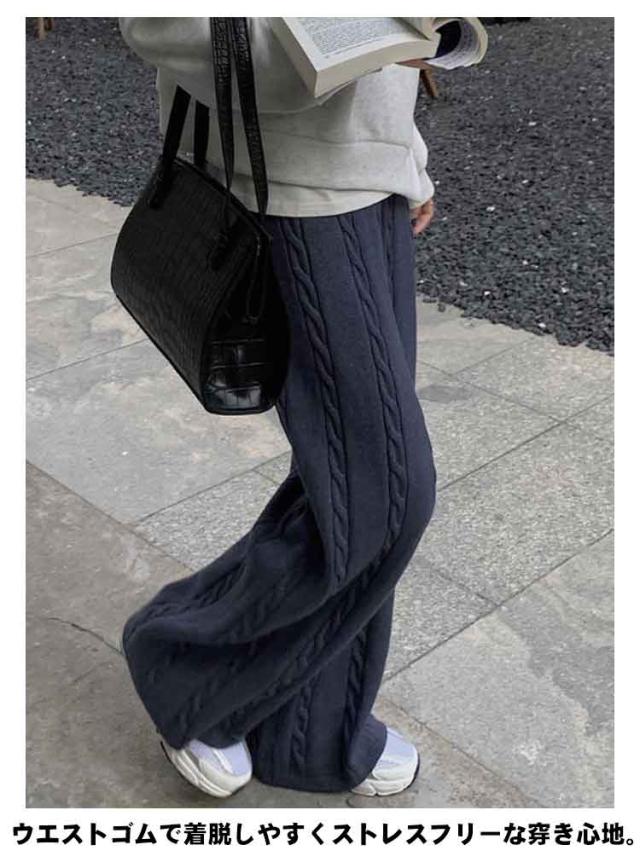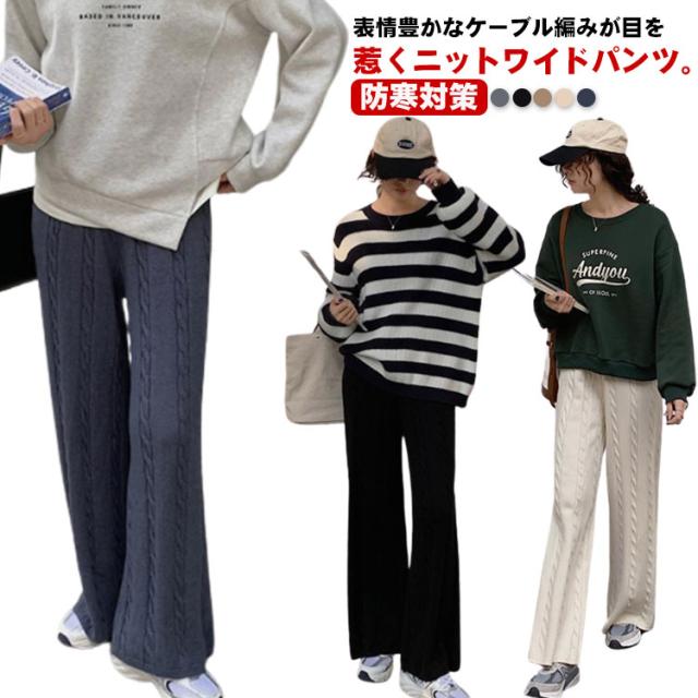 ニットパンツ レディース ワイドパンツ ケーブル編み ニット イージーパンツ ストレート 厚手 極暖 暖かい 防寒対策 ボトムス 大人カジュアル きれいめ おしゃれ シンプル ウエストゴム ゆるパンツ リラックス 楽ちん 体型カバー 通勤 秋冬