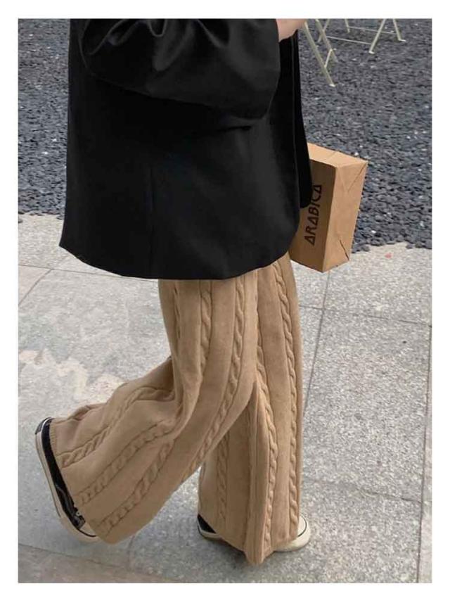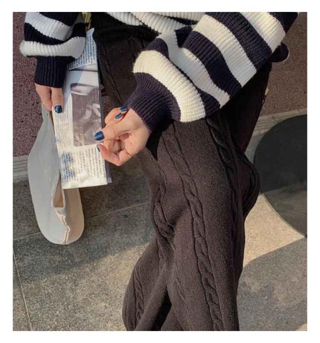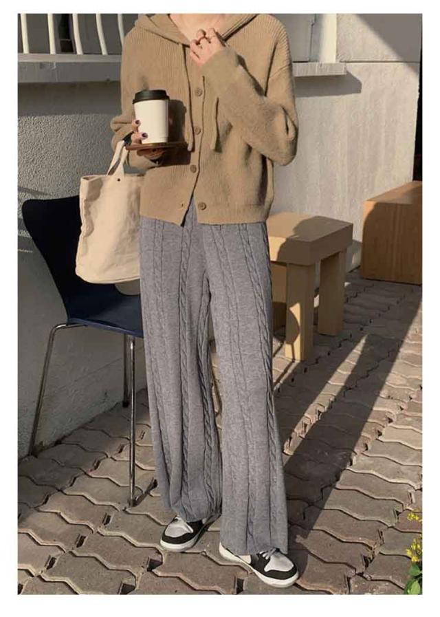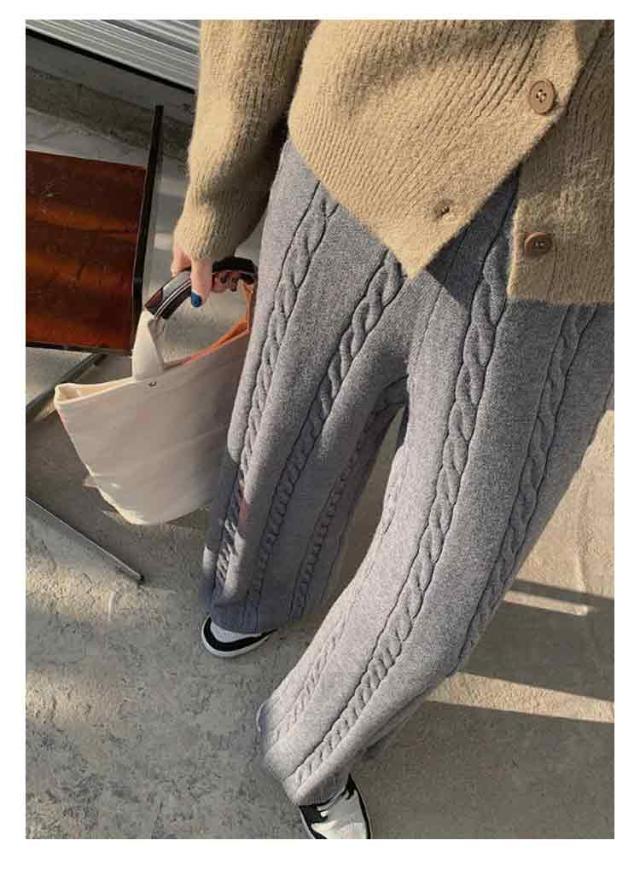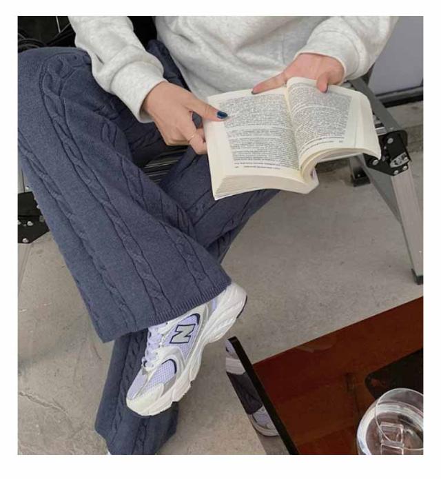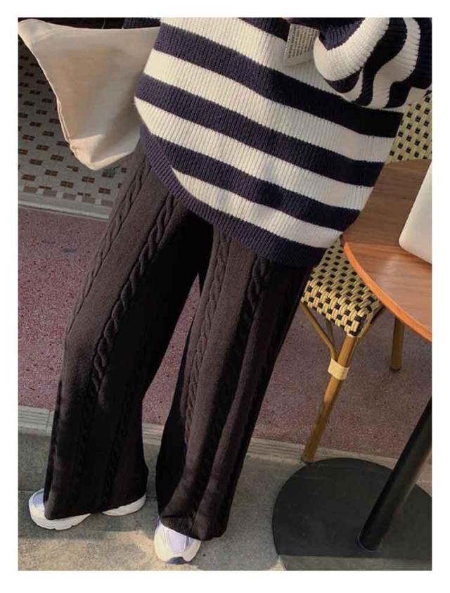 ニットパンツ レディース ワイドパンツ ケーブル編み ニット イージーパンツ ストレート 厚手 極暖 暖かい 防寒対策 ボトムス 大人カジュアル きれいめ おしゃれ シンプル ウエストゴム ゆるパンツ リラックス 楽ちん 体型カバー 通勤 秋冬