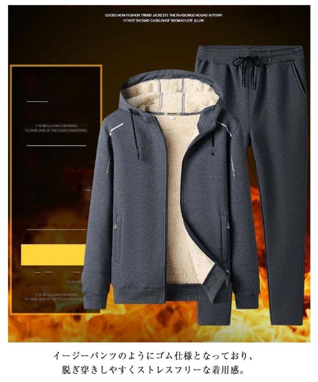 プルーオバー&ジップアップ2点トップス!ボアパーカー セットアップ メンズ 3点セット ボア パーカー ジャージ トレーナー 上下セット ロングパンツ ルームウェア 防寒 あったか もこもこ 秋冬 厚手 スポーツウェア カジュアル シンプル
