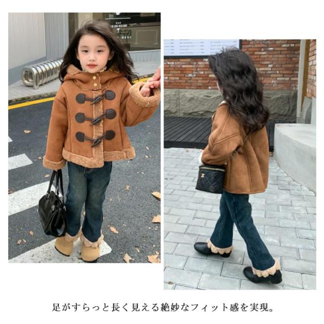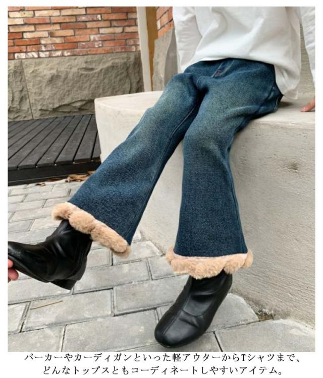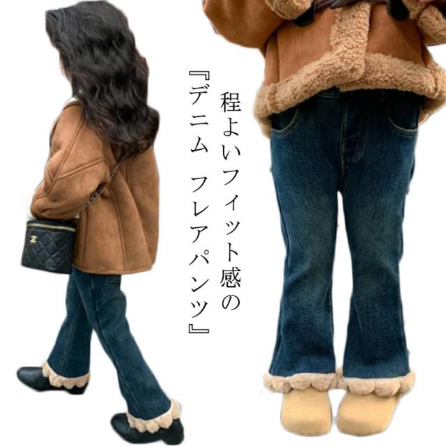 デニム パンツ キッズ デニムパンツ キッズパンツ フレアパンツ ロングパンツ ベビー 子供服 ボトムス 裏起毛 厚手 長ズボン カジュアルパンツ キッズズボン ロング丈 防寒 暖かい カジュアル 無地 シンプル ナチュラル 女の子 子供服 幼稚園 オシャレ 春 秋 冬